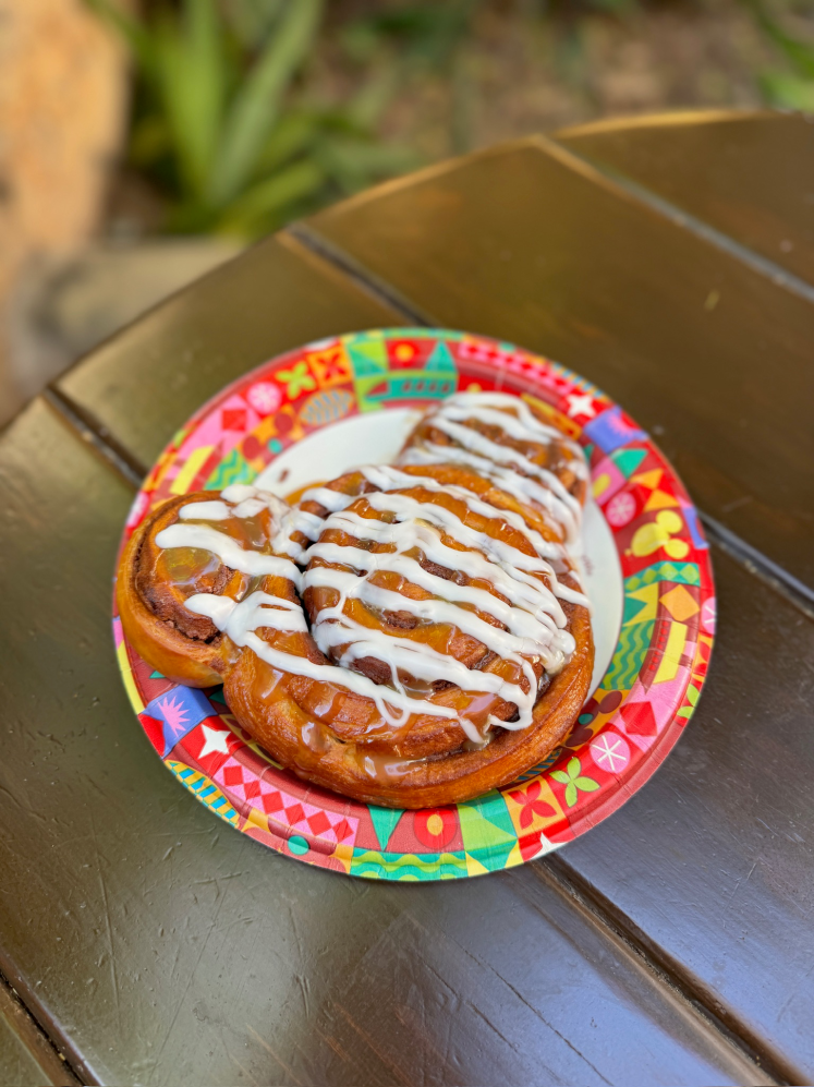 If this cinnamon roll were rated based only on how it looked, it would have received a perfect rating of 5. However, sadly it didn’t taste as good as it looked. Overall we gave this an okay rating of 3.
