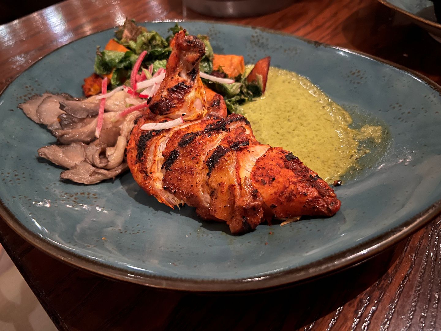 Pollo Poblano – Roasted Chicken Breast with Poblano Cream Sauce served with Brussels Sprouts, Sweet Potatoes and Oyster Mushrooms. $30.00