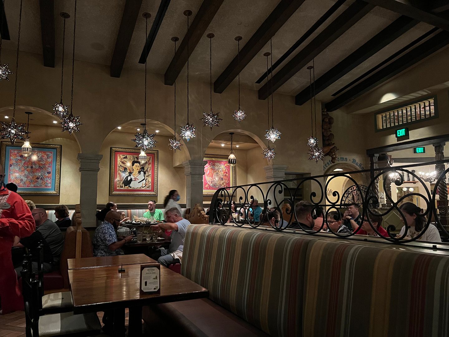 We made an 8:30 reservation here with the hope of watching the 9:45 fireworks show from a table by the window. I checked in at the desk outside the restaurant and then waited inside for our name to be called.