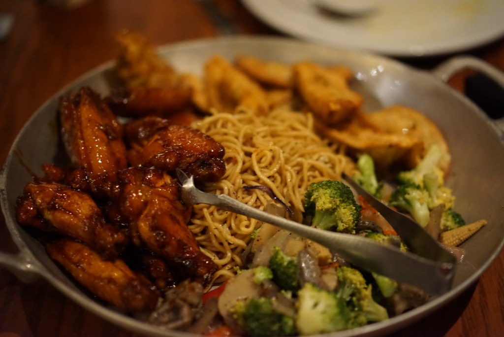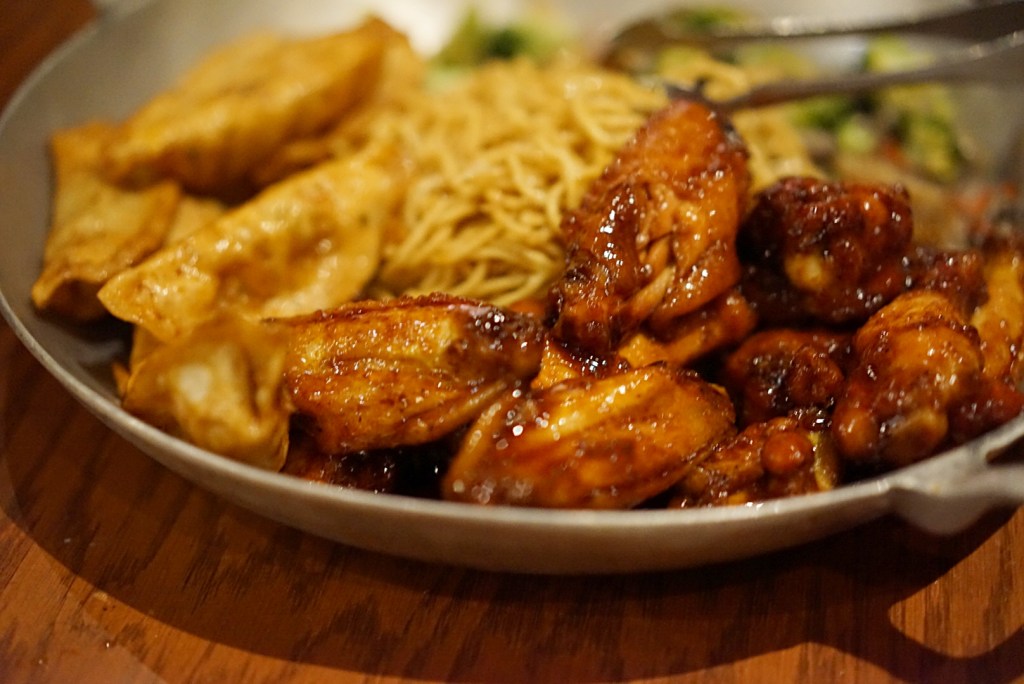 This platter of food was my favorite part of this dinner. I especially loved the dumplings, and could have easily made a meal with just these. Served with Peanut (my favorite) and Sweet-n-Sour Sauces, these were delicious!