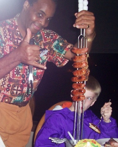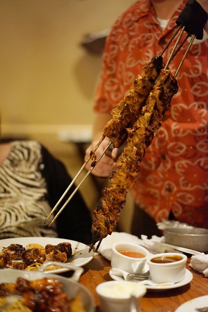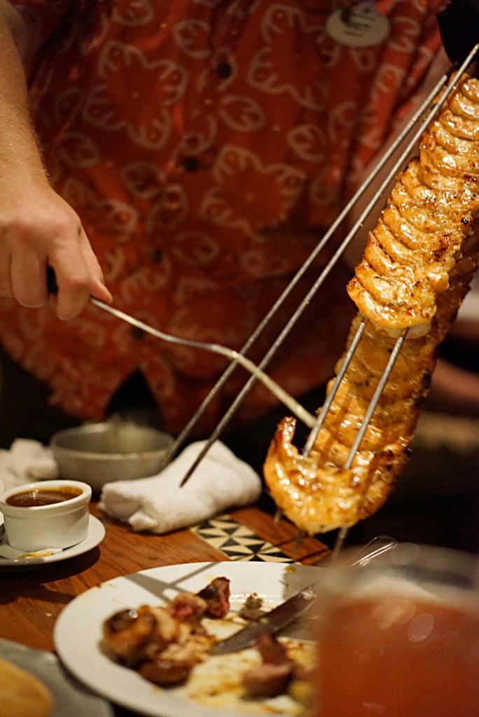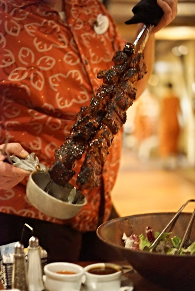 Then the oak-fired grilled meats began to arrive, brought to our table by our server on giant skewers…