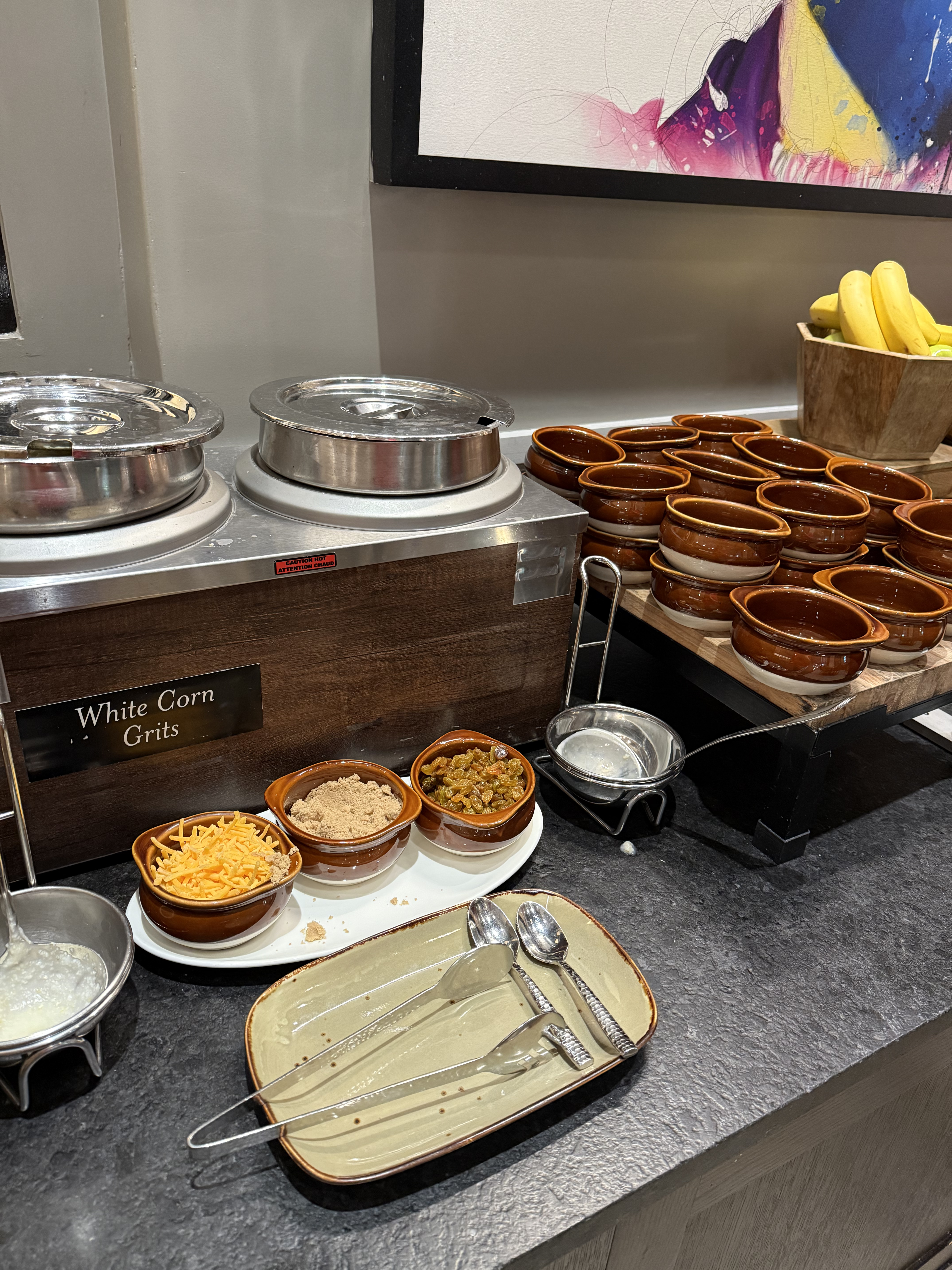 As well as Steel-Cut Oatmeal and White Corn Grits, plus toppings…
