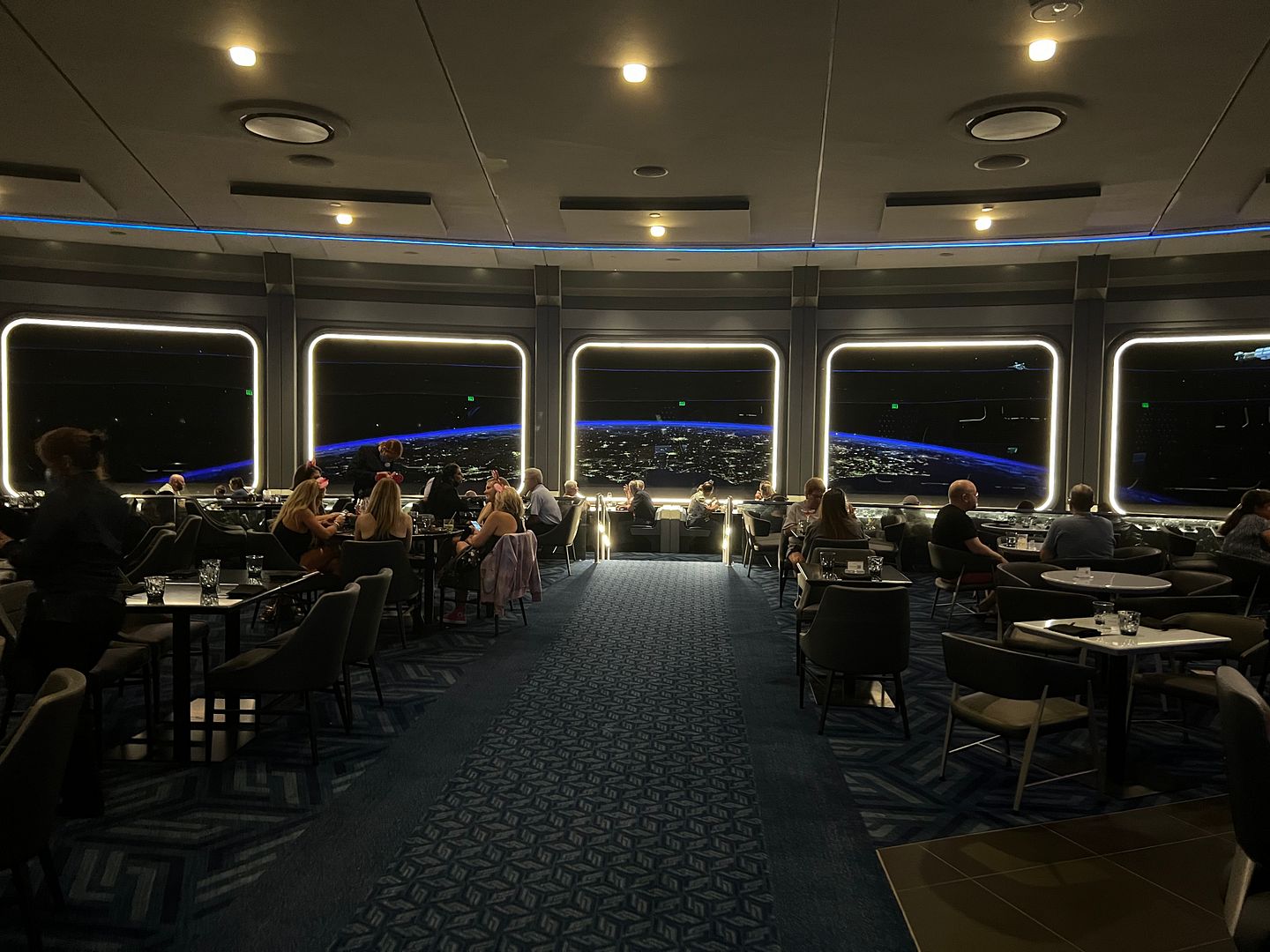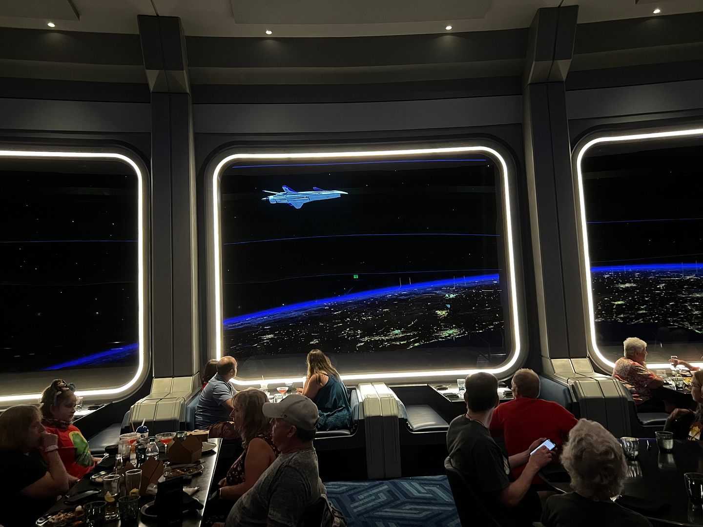 We were seated on the second level and had a great panoramic view of the windows looking out into space…