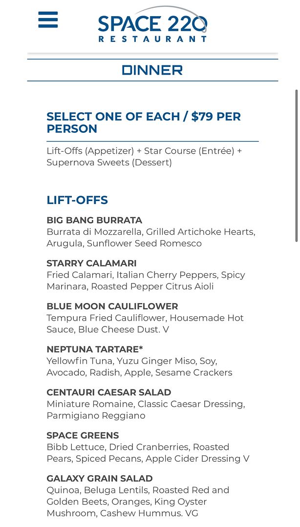 This simulated being rocketed 220 miles above Earth to the Space Station where the restaurant is located…