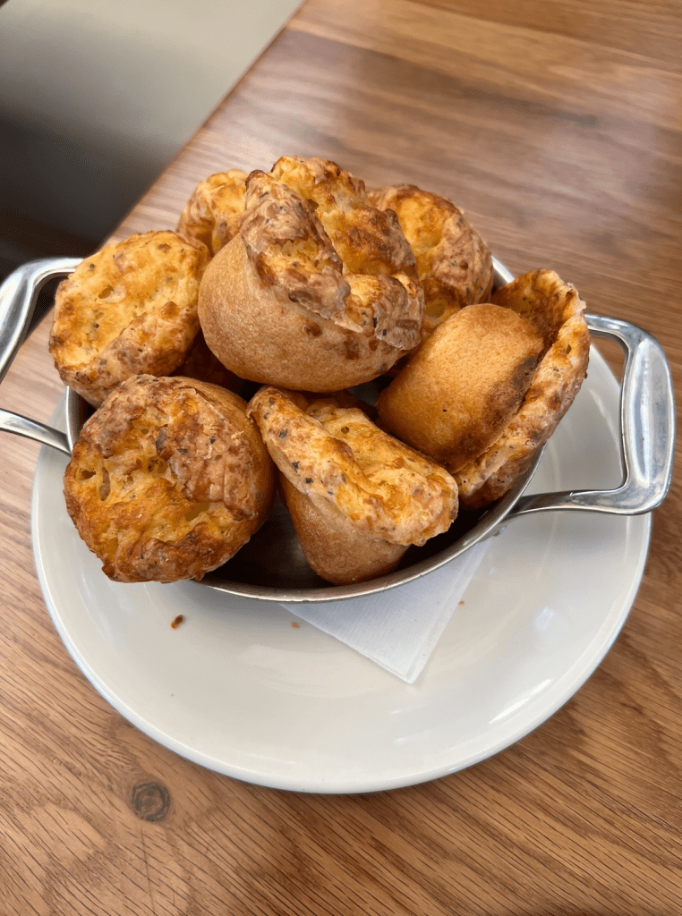 Cheesy Dream Puffs – Cheesy gluten-free tolls topped with sea salt, pepper and rosemary – $10.95 (price as of Feb. 2025 is $12.95)
