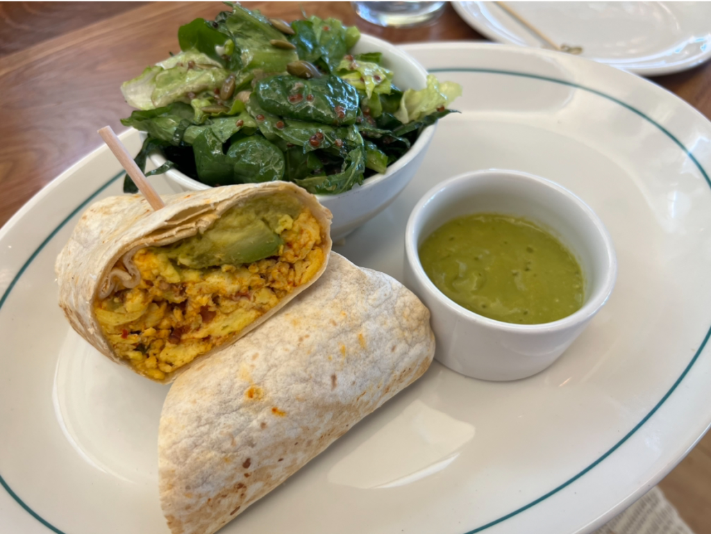 Breakfast Burrito – Flour Tortilla filled with Scrambled Eggs, Monterrey Jack Cheese, Pico de Gallo, Bacon and Avocado – $16.95 (price unchanged)