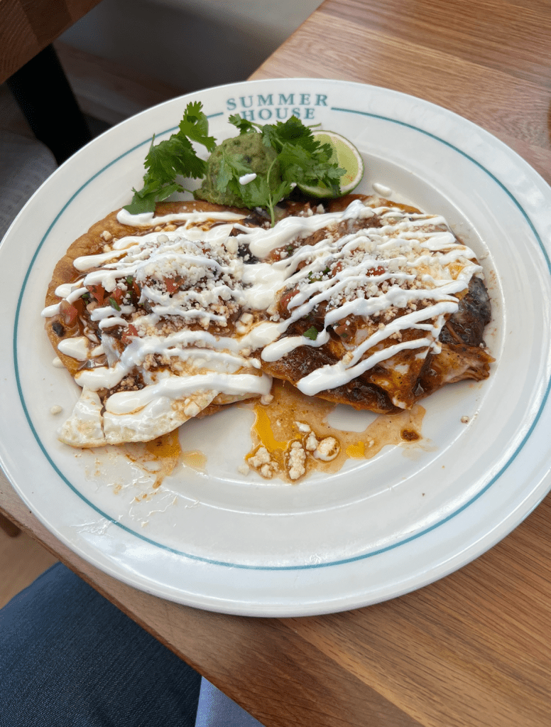 Breakfast Tostadas with Pulled Chicken, Black Beans, Ranchero Sauce, and Monterrey Jack Cheese topped with sunny side eggs and crema – $18.95 (price unchanged)