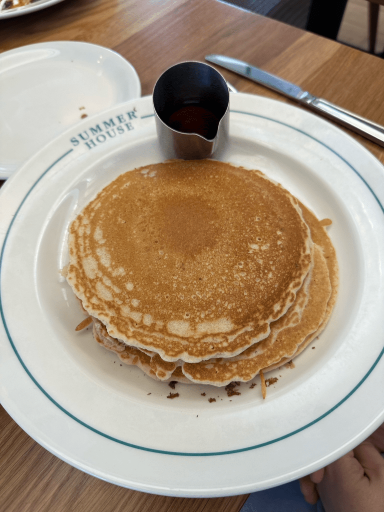 Fluffy Buttermilk Pancakes served with Vermont Maple Syrup – $15.95 (now $16.95 as of Feb. 2025)