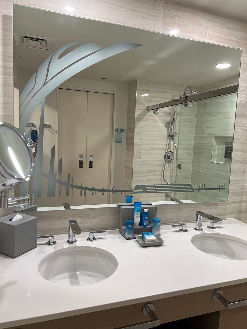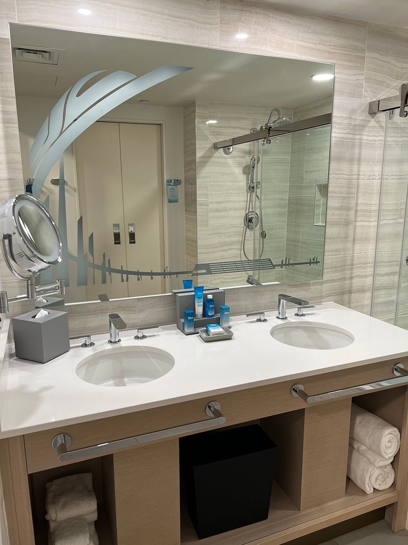 - I like that they made changes to the bathroom sinks. They still have two sinks but now have a lot more counter space.