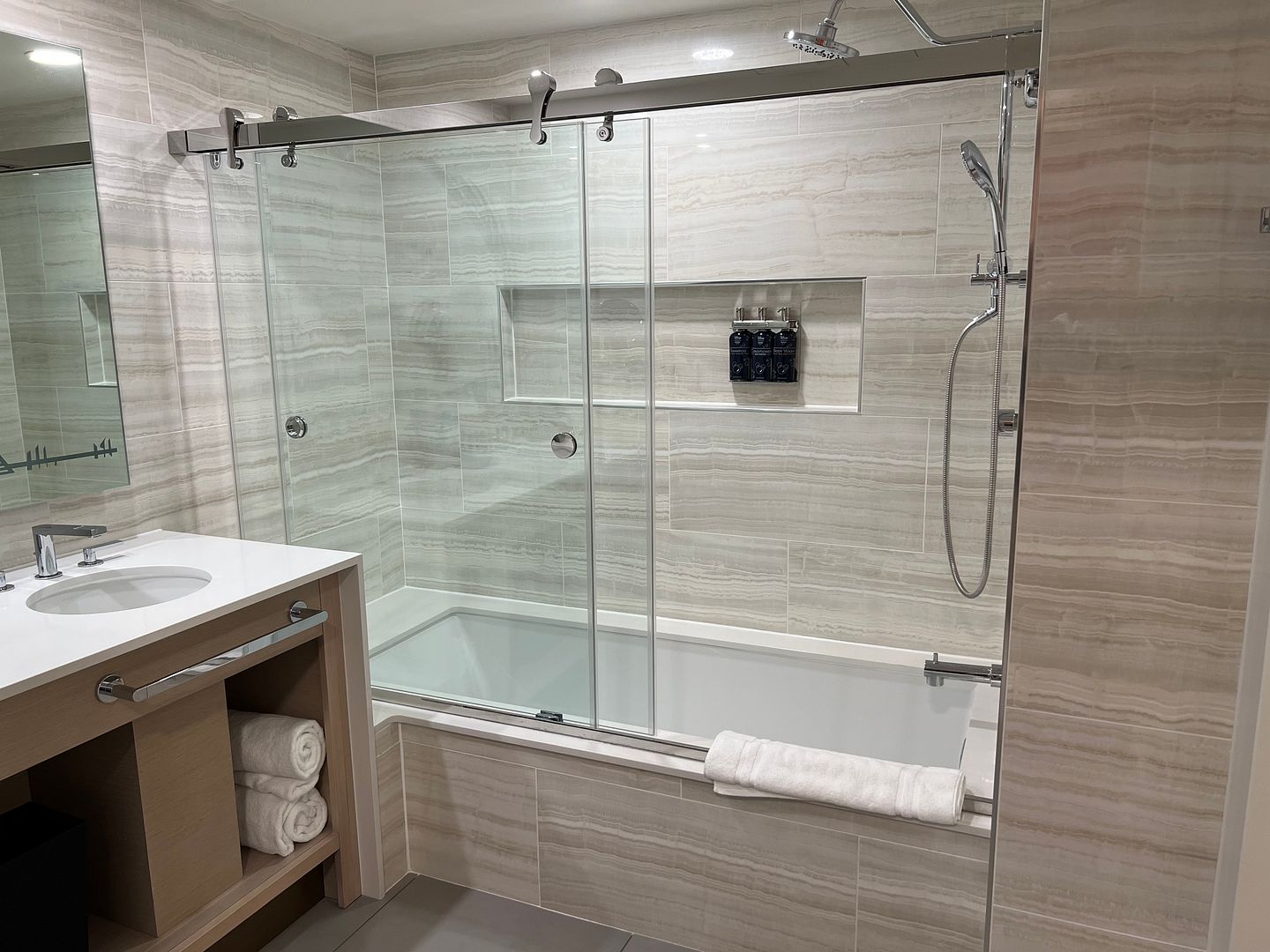 Here is a photo of the bathroom from my last stay at the Contemporary in 2019…
