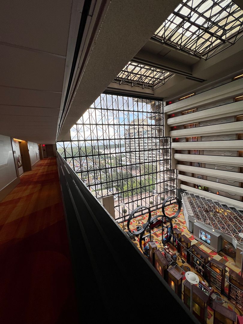 Though I had stayed in the Garden wing of the resort three times over the last 20 years (most recently in 2019), this was the first time I splurged for a more expensive Tower room. And since I knew it would be my last Disney trip for a few years, I splurged even further and booked a Theme Park View room thanks to a very nice discount. On the map shown above the room numbers on the Magic Kingdom side (Theme Park View) of the resort end with 25 – 48, with 25 being closer to the Garden wing and 48 being closest to the Magic Kingdom. We were lucky to be assigned to Room 4544, which was on the 9th floor.