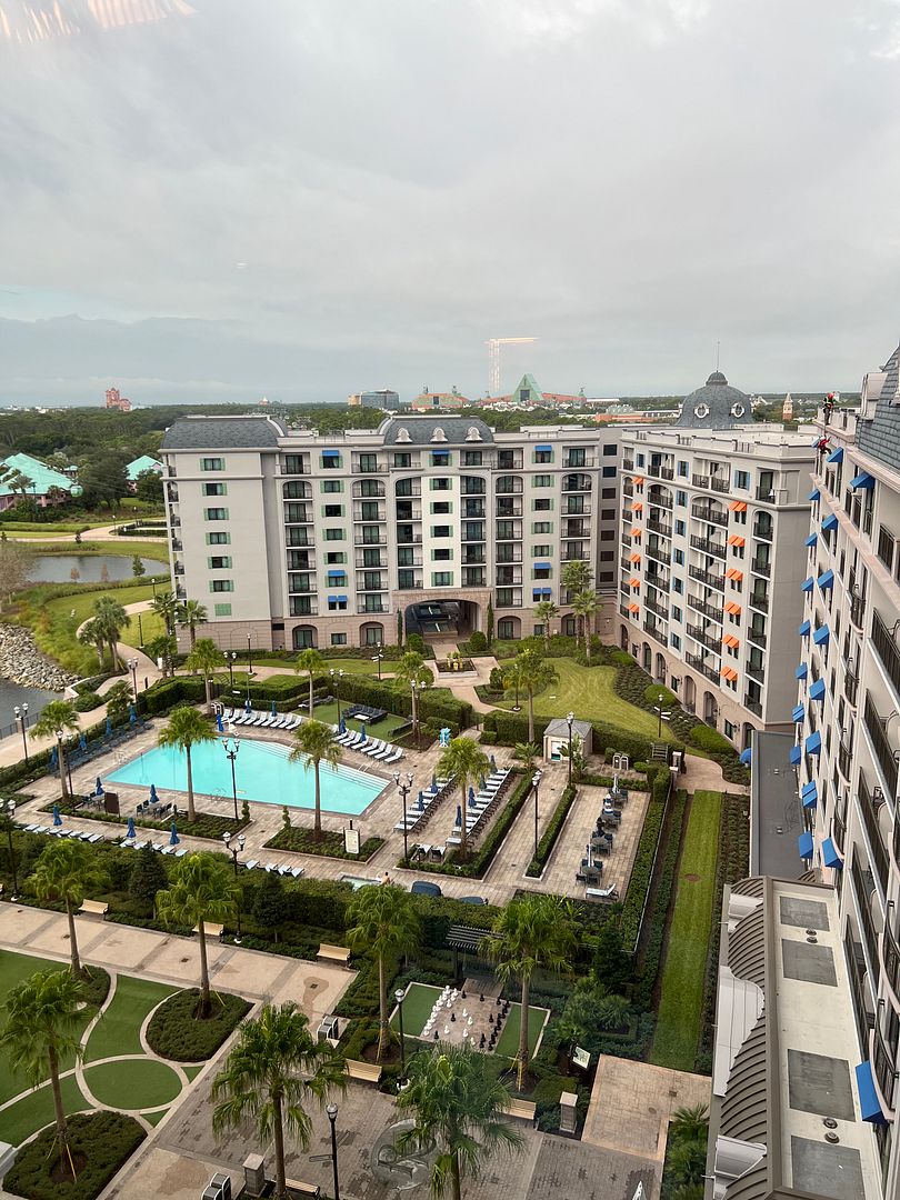 You could see Tower of Terror (aka Hollywood Hotel) at Hollywood Studios and the Swan & Dolphin Resort. Also some of the taller buildings of Epcot’s World Showcase could be seen.