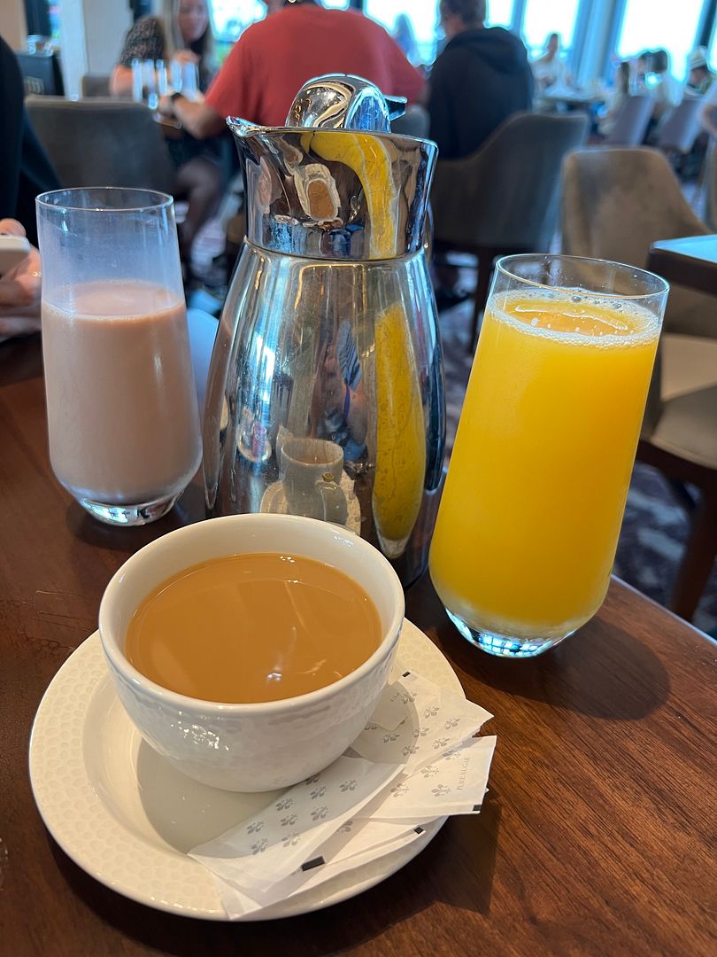 We started by ordering some beverages, Chocolate Milk for Andrew and both Coffee and OJ for me…