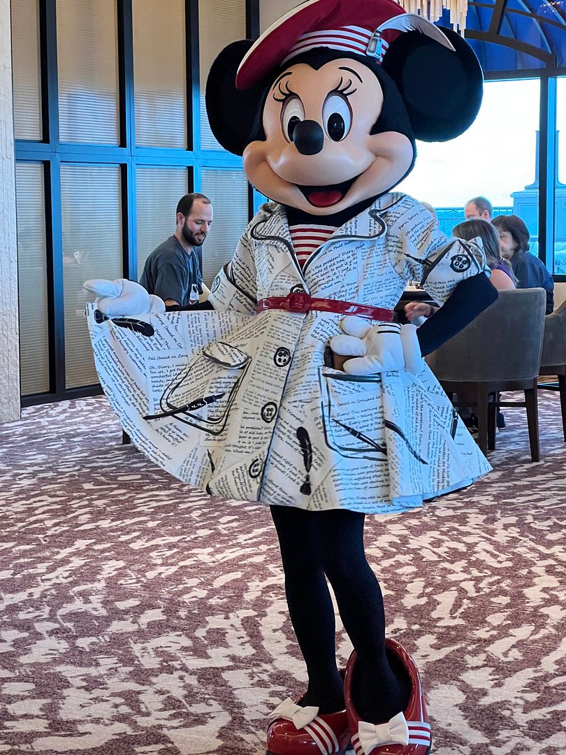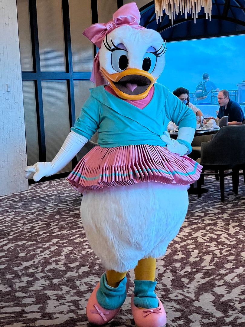 So overall there were many positives for this meal. The food received 4’s across the board. The service was great and they didn’t make you feel rushed at all. I prefer this style of service, where you can select from several options and the food is served to you at the table. I also loved the atmosphere. The restaurant is beautiful inside and out, with a great view from the terrace. And the characters’ costumes are very cute! The one negative is that it was priced at $42.00 (in October 2021) and now (Feb. 2024) costs $49 for adults and $30 for children. The only more expensive character breakfasts are Cinderella’s Royal Table, Akershus, and Chef Mickey’s. But in my opinion it was worth the extra money. It was my favorite character meal of this trip!