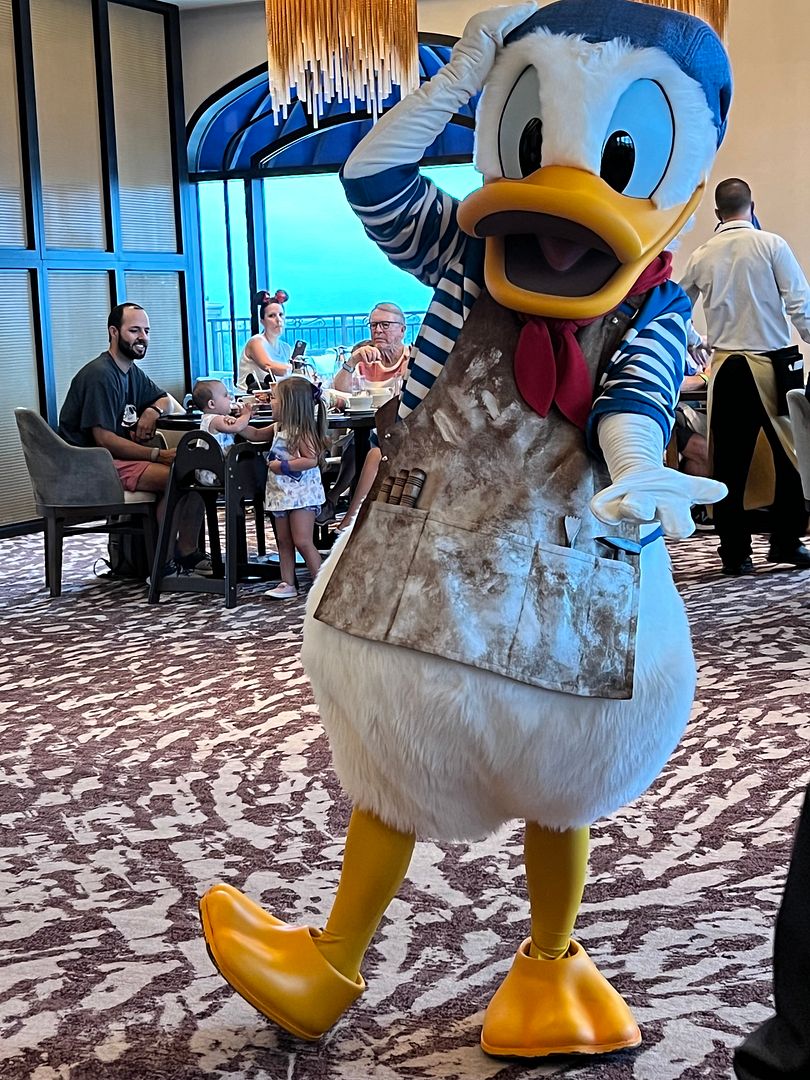 The characters came around several times during the hour plus that we were there. Although they had to remain socially distanced, they still posed very well for photos and interacted with the guests as best they could. Twice during our breakfast they had a “character celebration” where they played the well-known Italian song, “Funiculi, Funicula”.