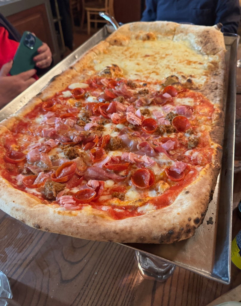 1/2 Meat Lover and 1/2 Quattro Formaggi Mezzo Metro Pizza ($60.00)