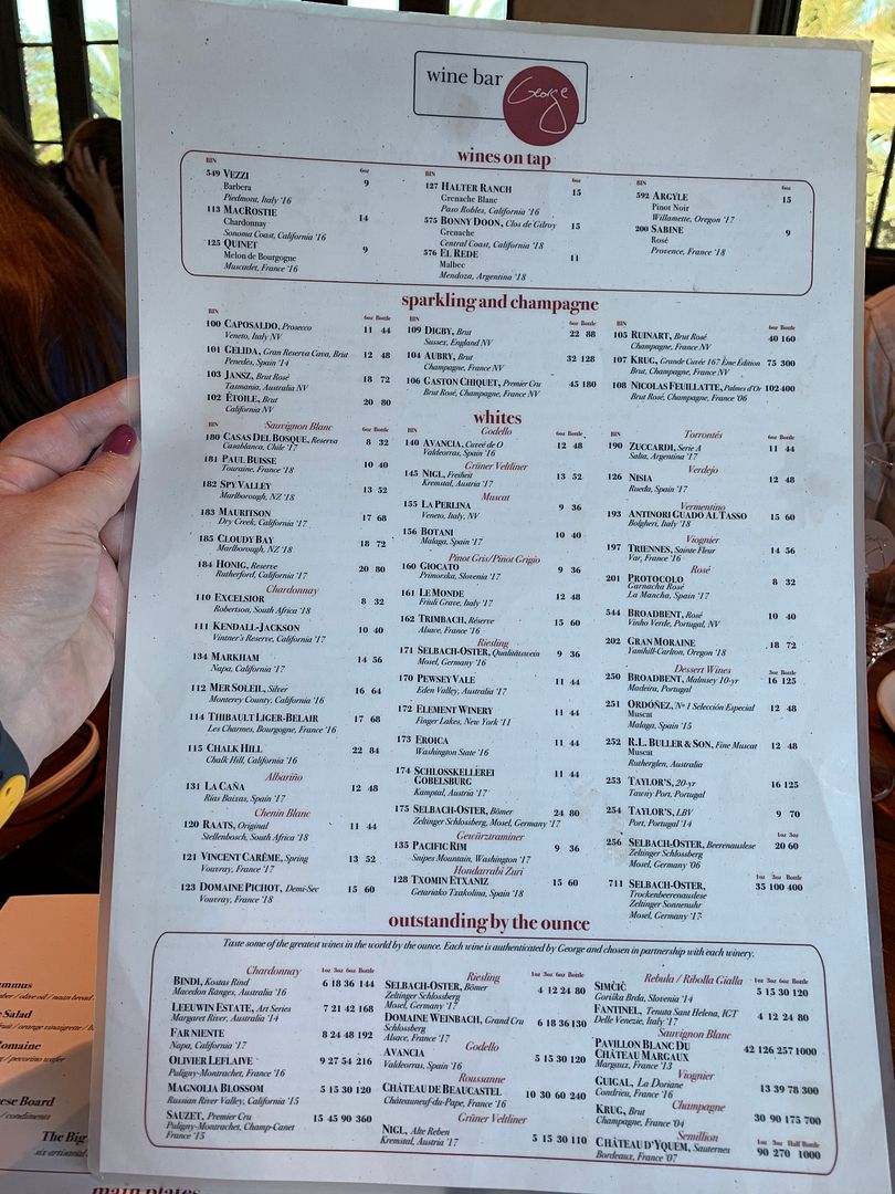 We arrived at Wine Bar George, located in The Landing area of Disney Springs, at about 10:55. We checked in and were immediately seated at a table for 2 next to the window in the upstairs bar area.