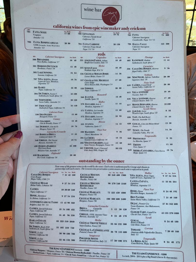 Here are some menu photos, starting with their extensive list of wines…