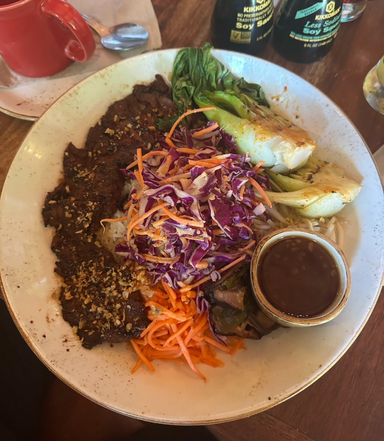 Skirt Steak with Asian Slaw, Bok Choy and Miso Sauce